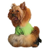 Стеганые куртки из ярких плащевых тканей, отделанные по низу, манжетам и капюшону натуральным мехом. Застежка на кнопки, только химическая стирка.