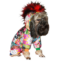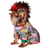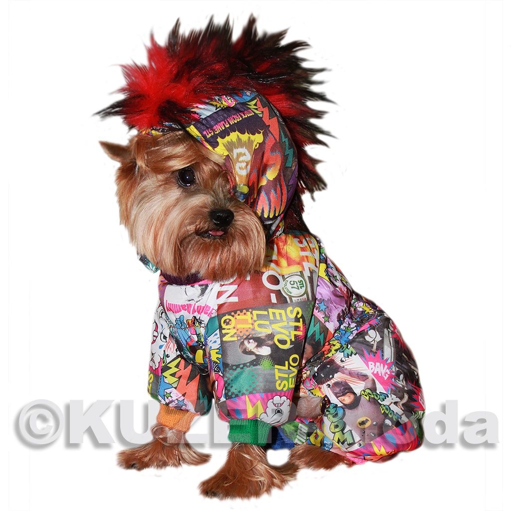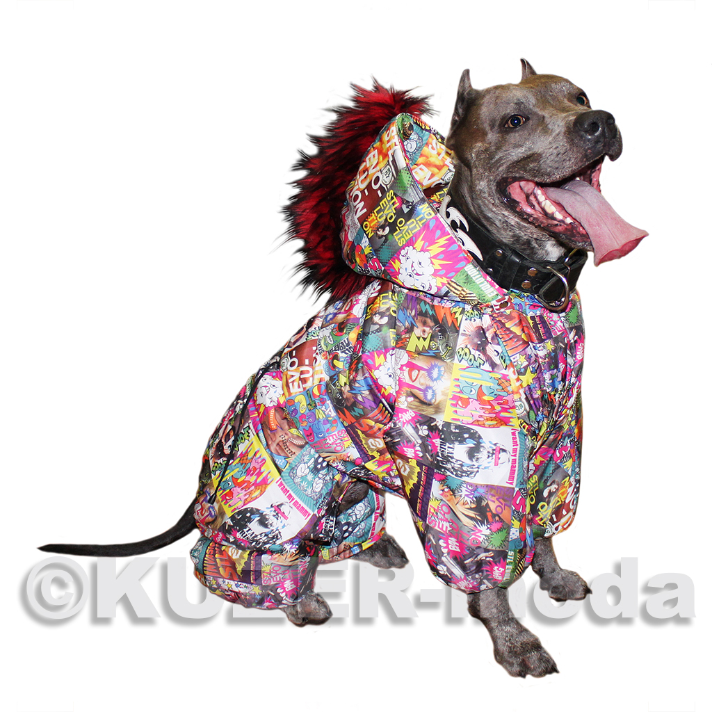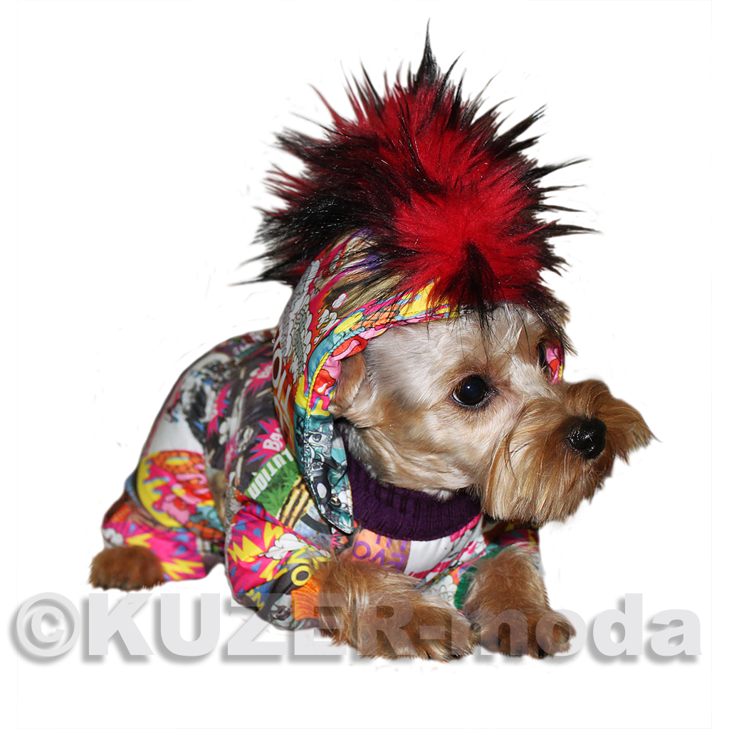 комбинезон для ценителей «неформального» стиля. Только утеплённый вариант - на халлофайбере, застёжка на кнопки, капюшон с цветной меховой отделкой , имитирующей «панковский» гребень. Яркая плащевая ткань «под комиксы», трикотажныя горловина и манжеты разных цветов. Бережная машинная стирка.