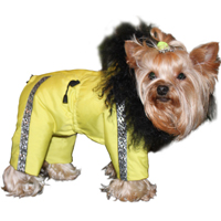 С капюшоном, отороченным натуральным мехом (ламой). Застежка на липучку.