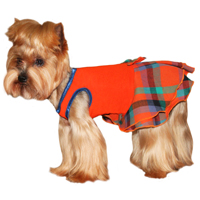 Верх платья - из хлопкового трикотажа, низ - из нарядной платьевой ткани с ярким рисунком.